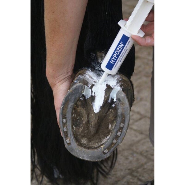 - Voor gebruik van Hypozin dient de straal eerst gereinigd te worden. De rottende delen van het hoorn moeten worden weggesneden, bij voorkeur door een hoefsmid.